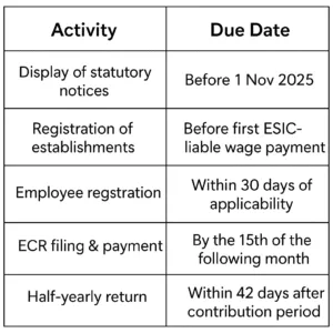 8. Integrate ESIC deductions from the first wage period beginning on or after 1 November 2025.